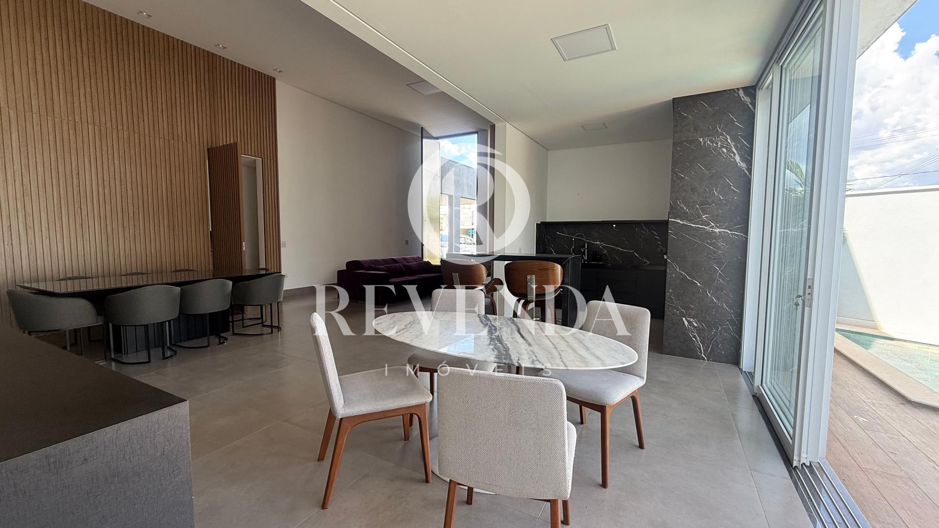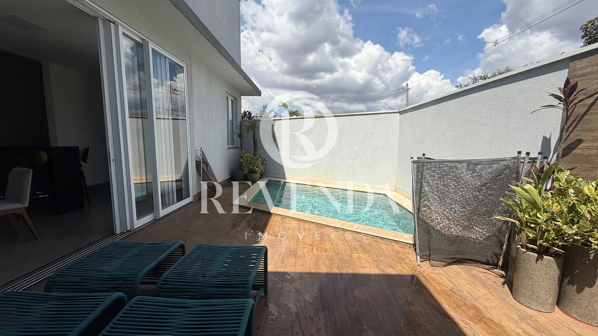 Casa no condomínio Splendido, toda montada com móveis planejados, com 212m² de área construída e 420m² de terreno, com 03 suítes, sendo 01 master com closet, banheiro social, sala em 02 ambientes com pé direito duplo, escritório, cozinha planejada, espaço gourmet, área de serviço ampla e funcional, piscina aquecida e iluminado e 03 vagas e garagem.