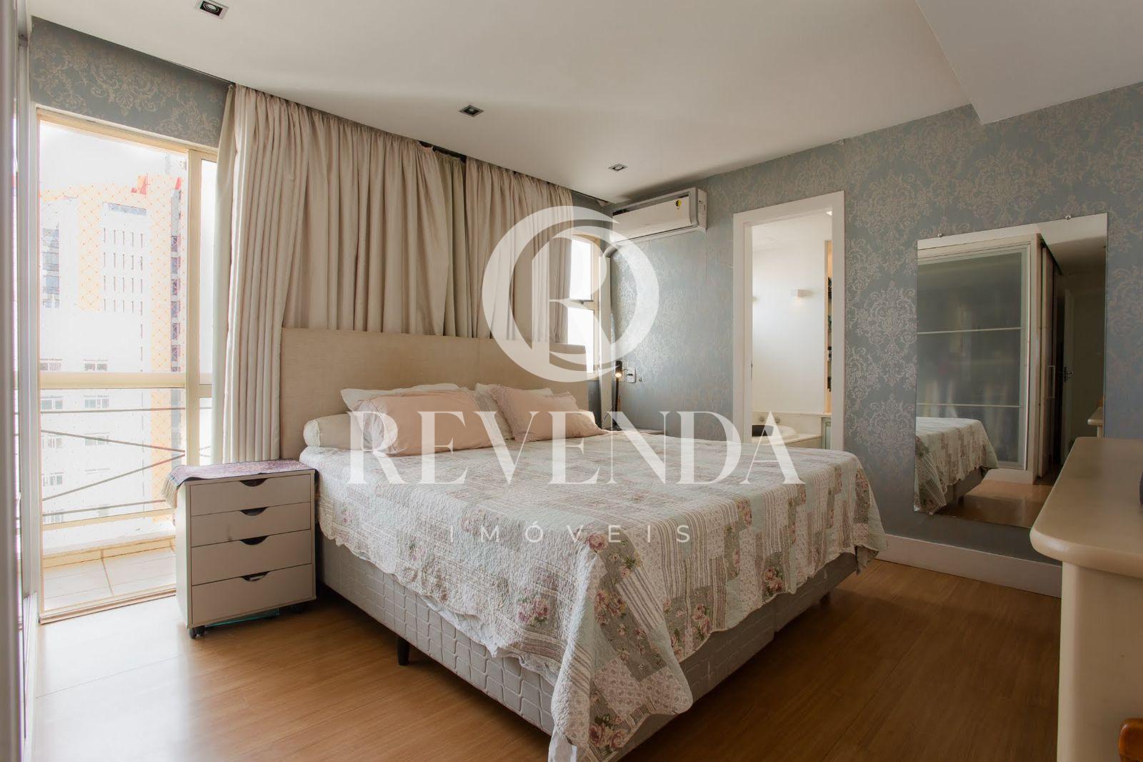 Cobertura no bairro Tabajaras, com 306m² de área privativa, composta por 04 suítes com armários, sala em 02 ambientes ampla, banheiro social, cozinha planejada com armários, área de serviço, varanda gourmet com churrasqueira, piscina e 4 vagas de garagem. O condomínio conta com portaria 24hrs , elevador e salão de festas.